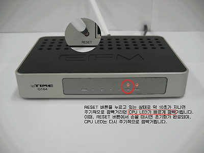 (ipTIME 공유기를 Reset 시켜주실 경우 설정되어 있던 데이타는 모두 초기화 됩니다.)