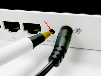 3. 공유기 후면 또는 전면에 리셋버튼을 아래와 같이 약 10초간 누르고 있습니다.