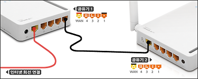 - 인터넷에 연결된 공유기에 내부 IP 주소 변경된 공유기를 연결