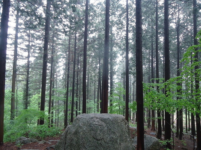 참빛처럼 가지런히 자란 빽빽한 침엽수림이 비온 뒤 맑게 갠 하늘의 청량감을 준다.