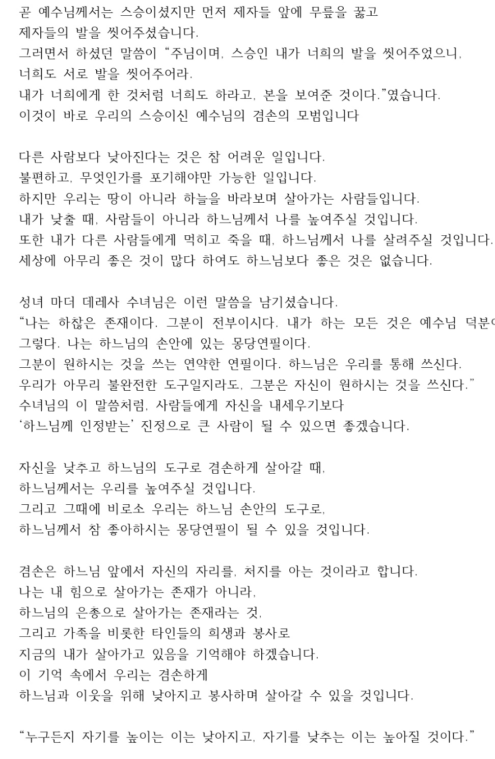 하느님과 이웃을 위해 낮아지고 봉사하며 살아갈 수 있을 것입니다.