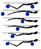 위 그림에서 사람이 일련의 동작을 제자리에서 위 아래로만 취한다면 그림처럼 물(파란 공)이 뒤로 나아가 겠지요.
