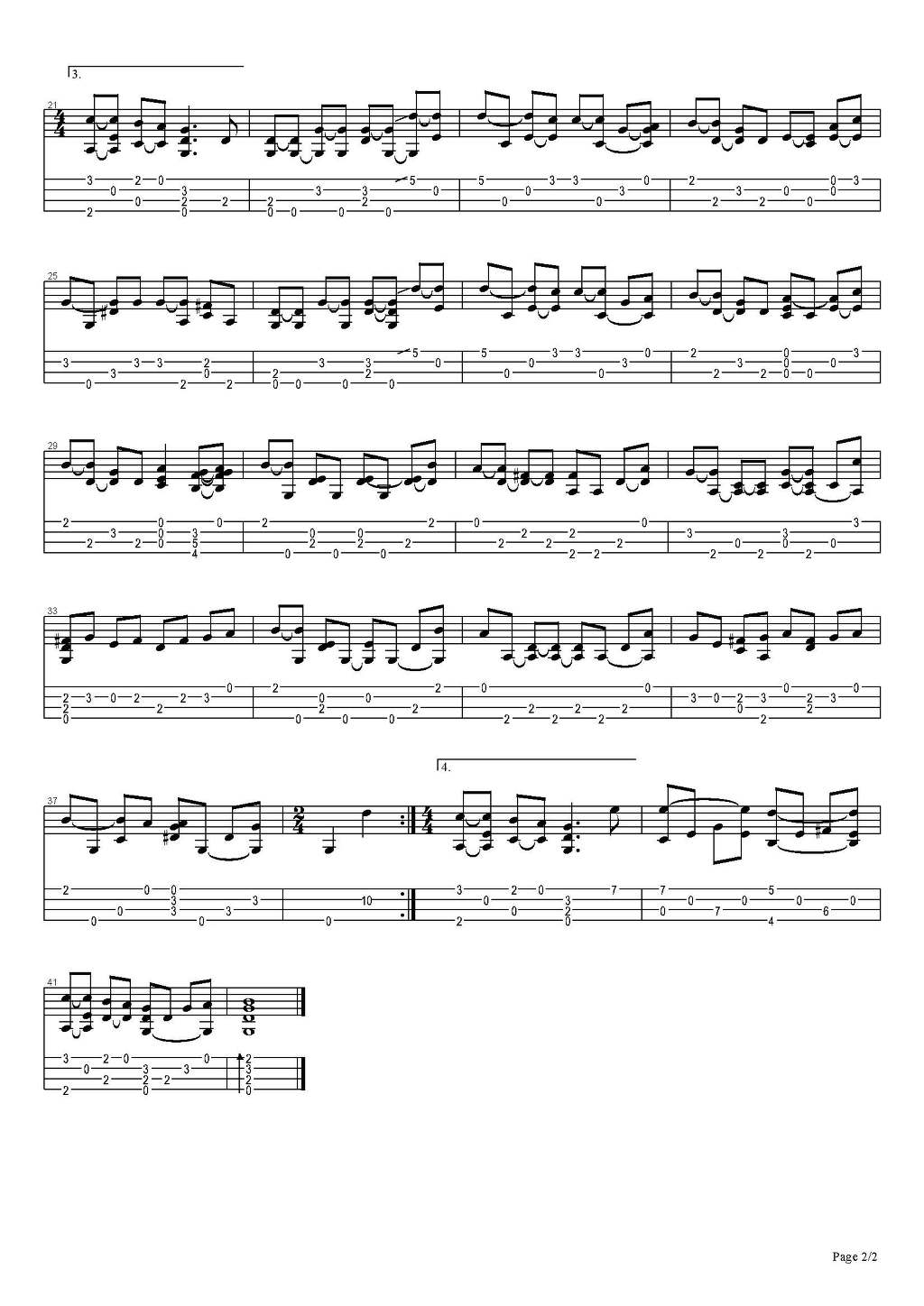 기타 타브악보에서 7개 음을 내려 채록했습니다. 그러니까 원곡의 메인코드 D가 G로 바뀌게 되겠죠...