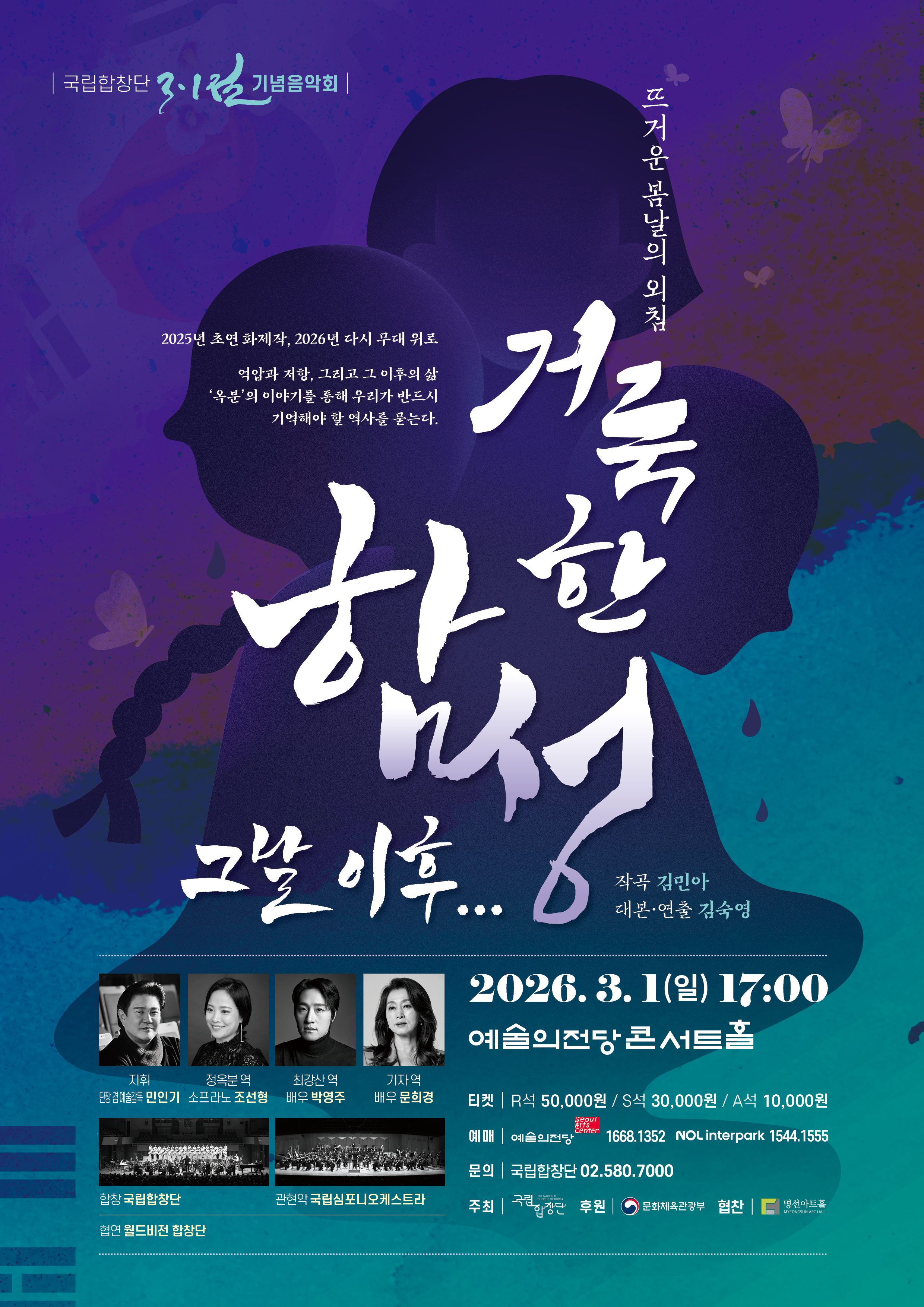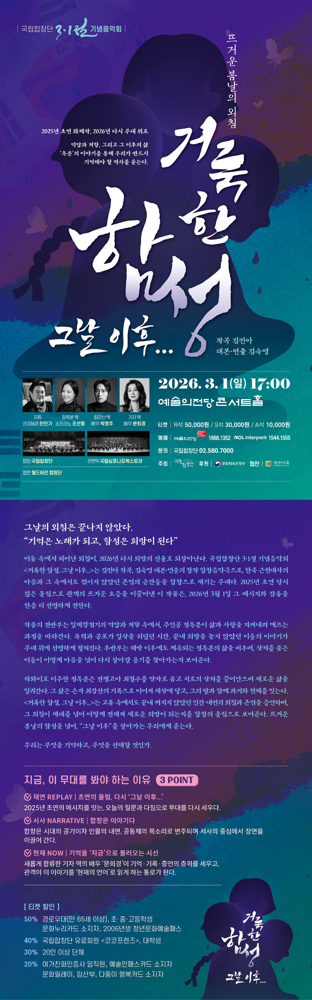 • 공 연 명 : 국립합창단 3·1절 기념음악회 <거룩한 함성, 그날 이후...>