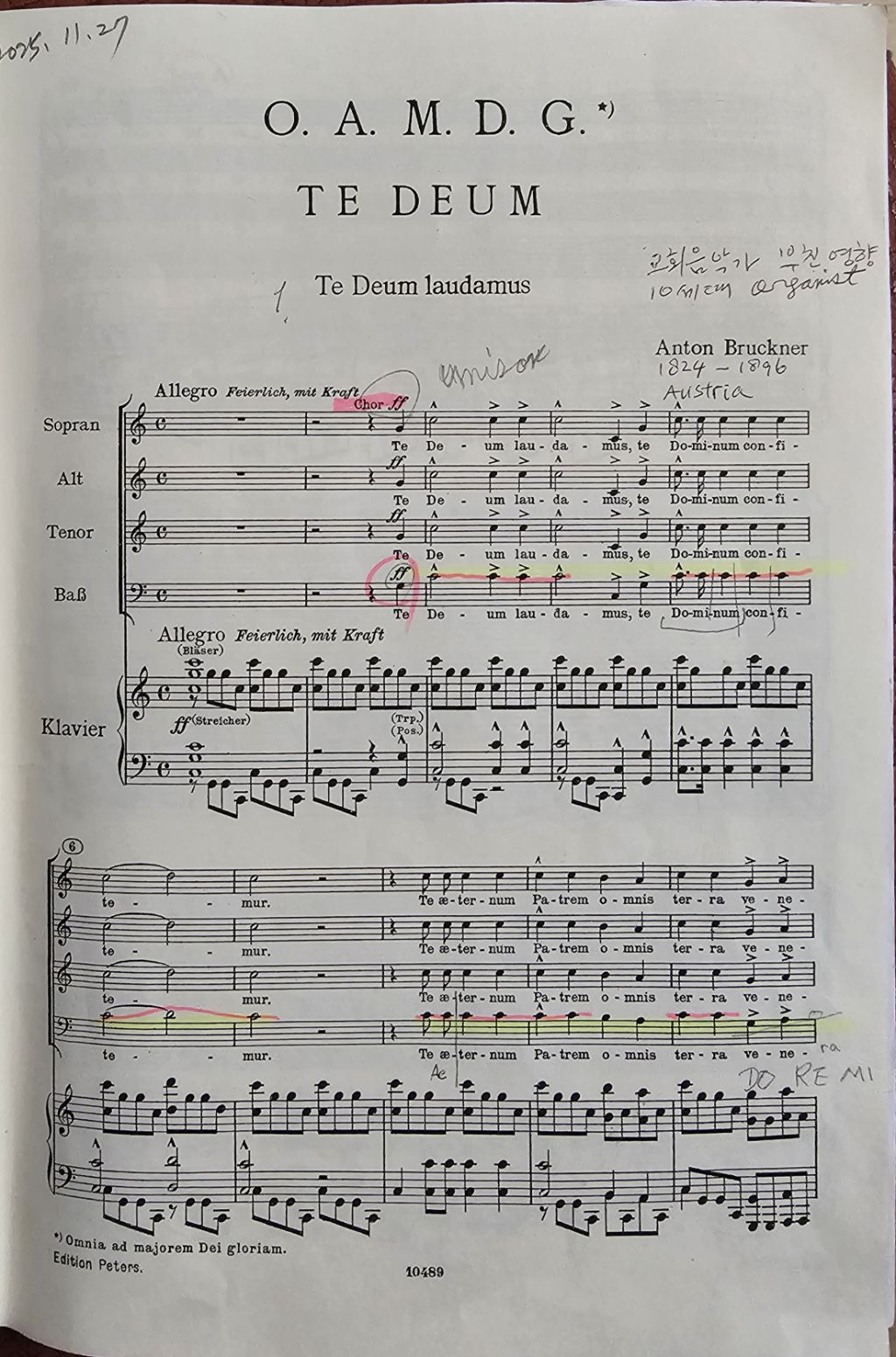 ANTON BRUCKNER 거장의 작품 TE DEUM 연주를 앞두고 악보를 매일 연구하고 있다.