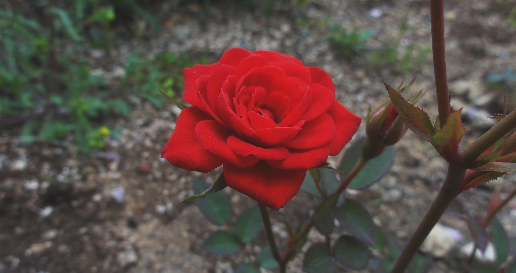 That's newly sprung in June. 6월에 새로 피어난 붉고, 붉은 한 송이의 장미꽃 같고,