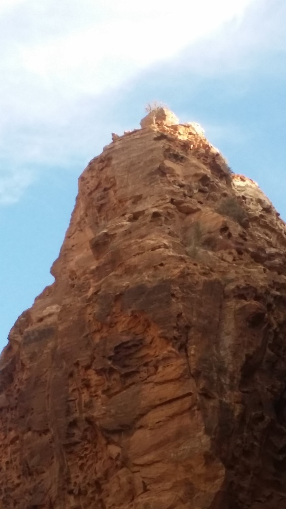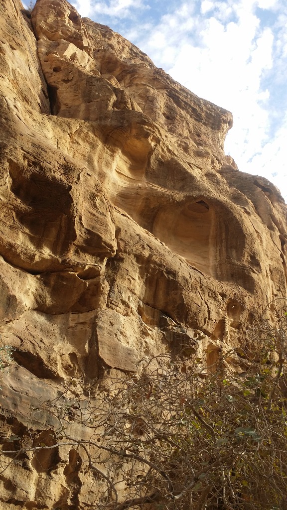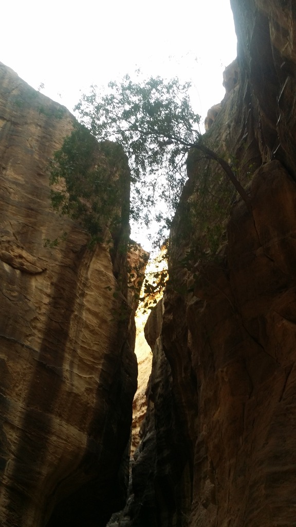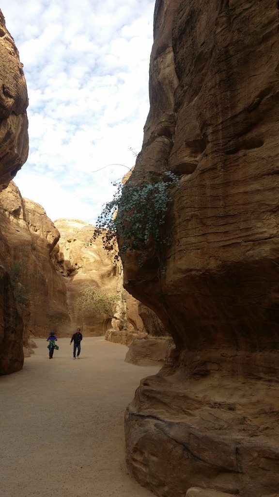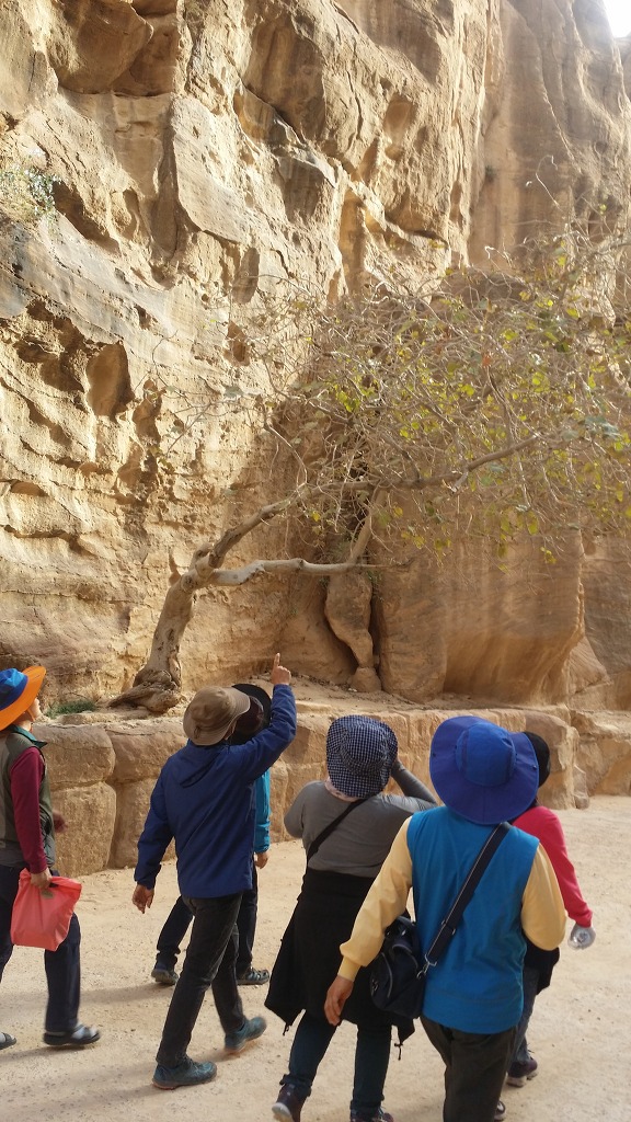 나무의 생명력이 놀랍습니다. 나바테아인과 에돔족속들은 돌틈에 자라는 나무들을 암석을 가공하는 일에 활용했다고 합니다. 뒤에 보면 나오지만 이 암벽에 조형물을 새길 때 틈새에 나무를 심고 물을 주어서 나무 뿌리가 돌틈을 파고 들어 부스러지기 시작하면 그곳에 정을 대고 쪼아내는 공법을 썼다고 합니다. 그렇게 하기 위한 세월이 얼마나 걸렸을까요?