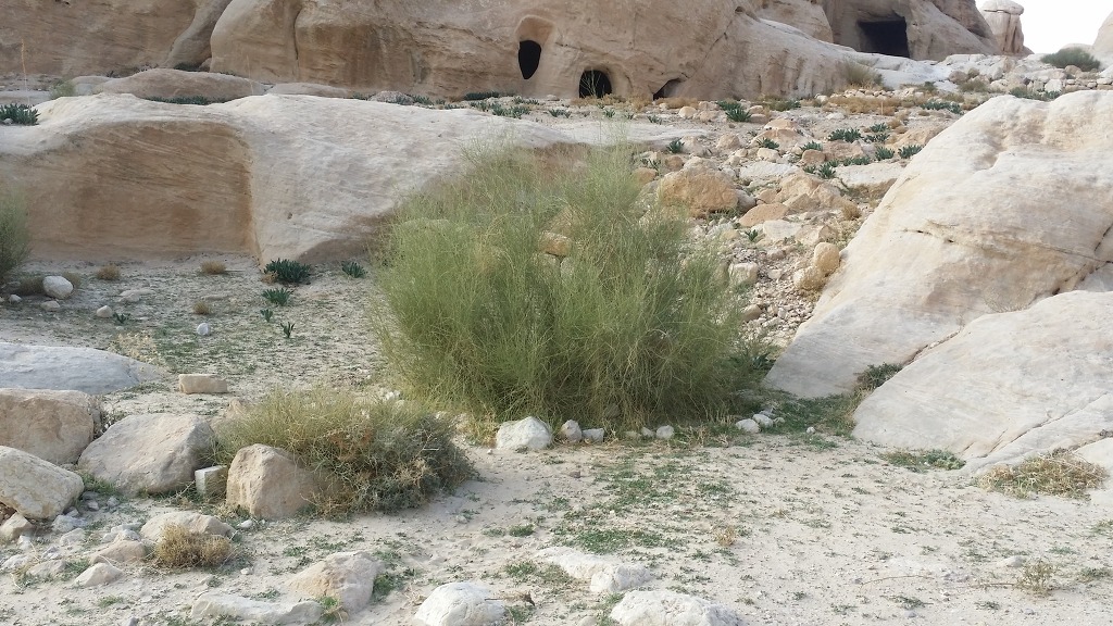 페트라 초입에 수풀같은 나무 한 그루가 있습니다. 이 나무가 로뎀나무입니다. 선지자 엘리야가 바알 선지자 850명을 무찌르고나서 이세벨 여사가 무서워 호렙산 로뎀나무 그늘로 숨어들었습니다. "여호와여 넉넉하오니 지금 내 생명을 거두시옵소서!"(왕상19:4) 하고 외치던 그 나무입니다. 지금은 건기라서 나무 잎이 없습니다.
