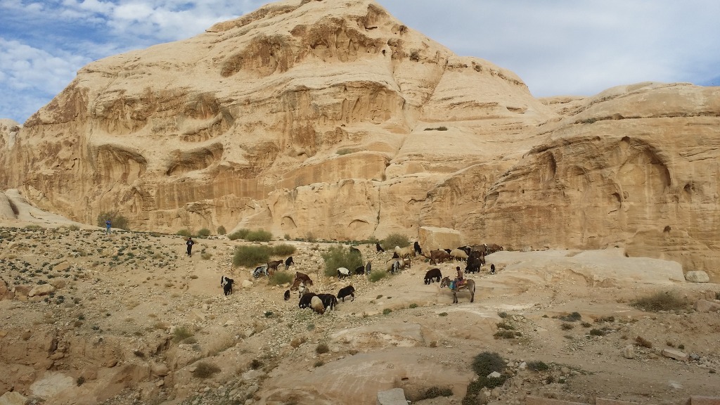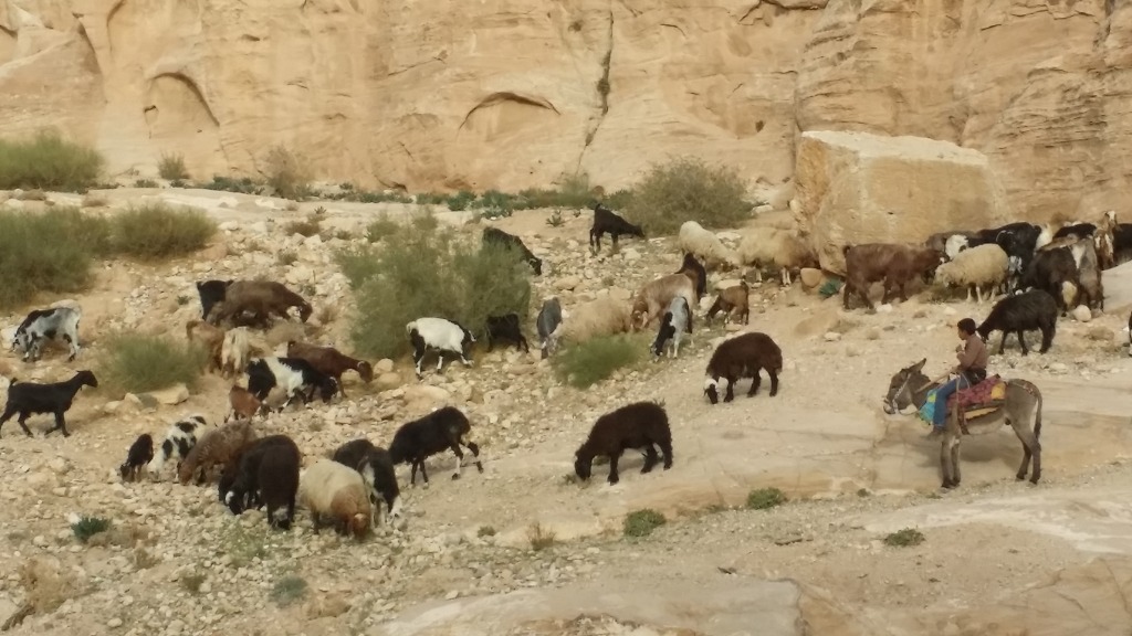 저런 곳에 한국 염소들 풀어놓으면 다 굶어죽을 것 같습니다. 중동의 양 염소 참 대단합니다. 옆에는 나귀를 탄 베두인 목동이 있습니다. 좀 더 가까이 잡아봤습니다. 이스라엘에서는 베두인들의 정착을 돕기 위해 아파트를 지급했다는데, 대부분 광야 천막이 좋다며 되돌아갔답니다.