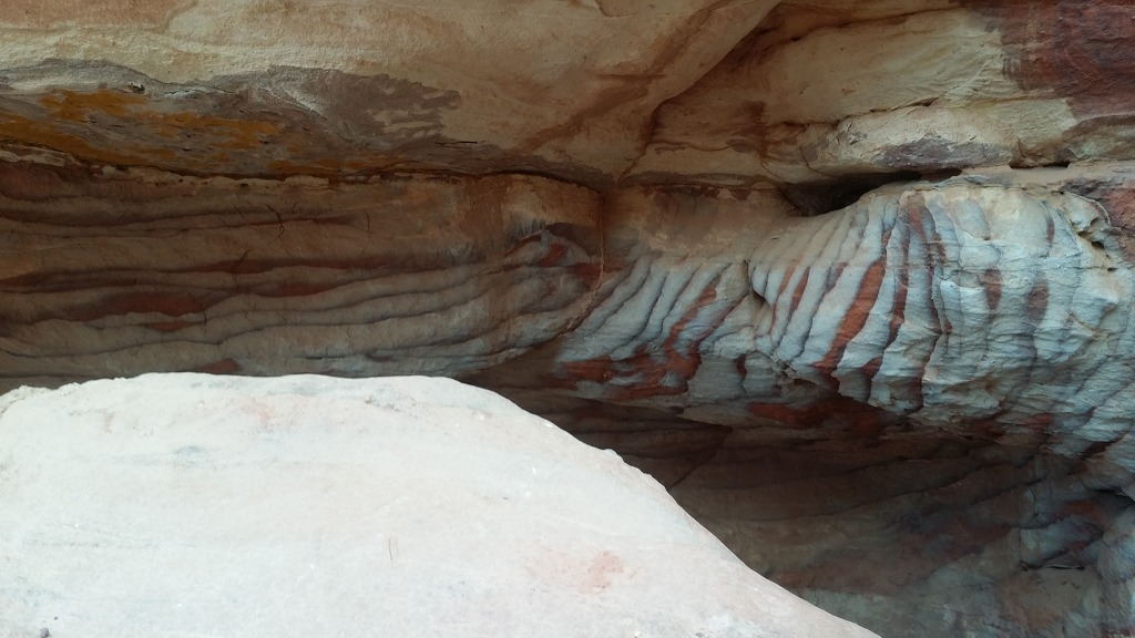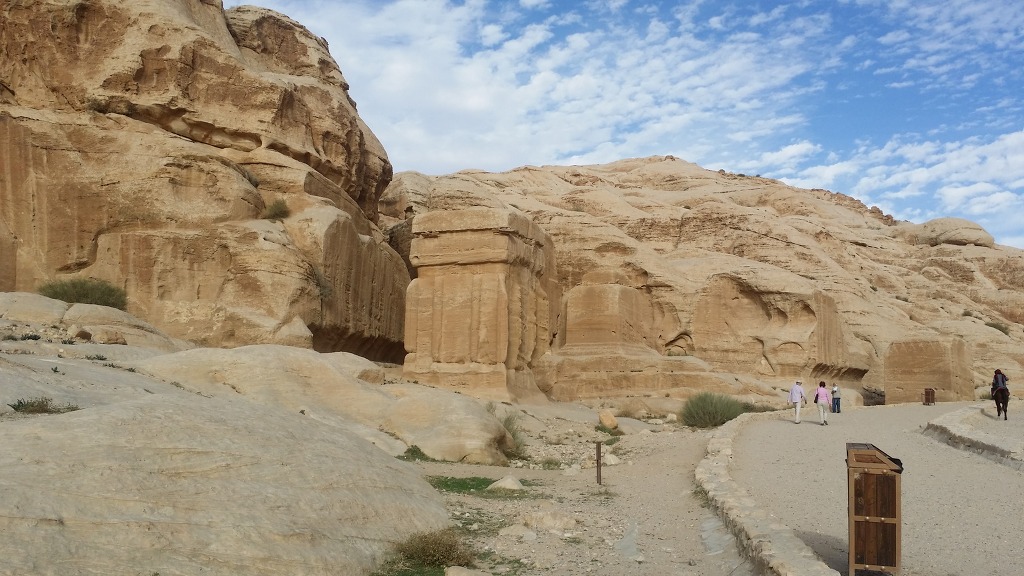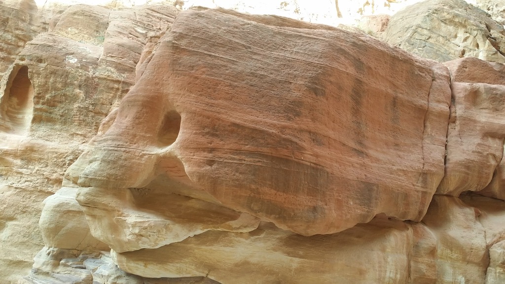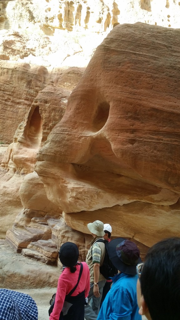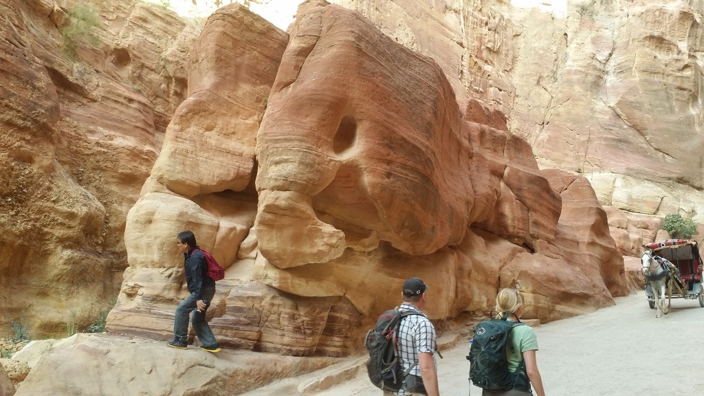 이제 곧 본격적인 페트라 시크(siq)로 접어들 터인데요, 시크는 백미터가 넘는 암석 틈새로 난 폭 3미터 정도의 작은 협곡의 길을 뜻하는 아람어입니다. 시크를 영어로 표기하자면 '캐년'이 될 겁니다. 그러니 여기는 페트라 캐년입니다. 시크로 들어서려는 우리의 시선을 잡는 한 장면이 옆에 있었습니다.