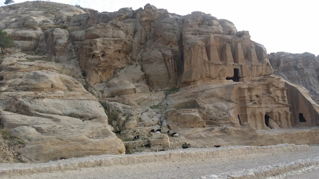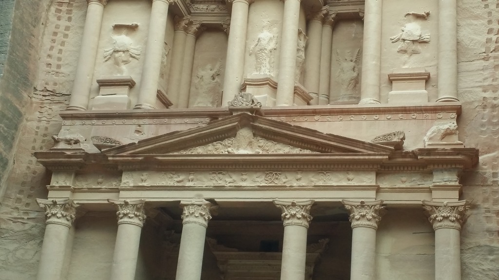 바위 암벽에 새긴 거대한 신전(?) 혹은 궁전(?) 무덤(?) 들어가보면 무덤이었을 가능성이 제일 크다고 하는데, 저희는 밖에서만 구경했습니다. 그런데 앞에서 보는 조형물을 보면서 저기 어딘가에 엄청난 보물이 숨겨져 있을 거라고 추측을 했습니다. 보물 찾기 한번 해 볼만 합니다. 나라면 보물을 어디에 숨겼을까?