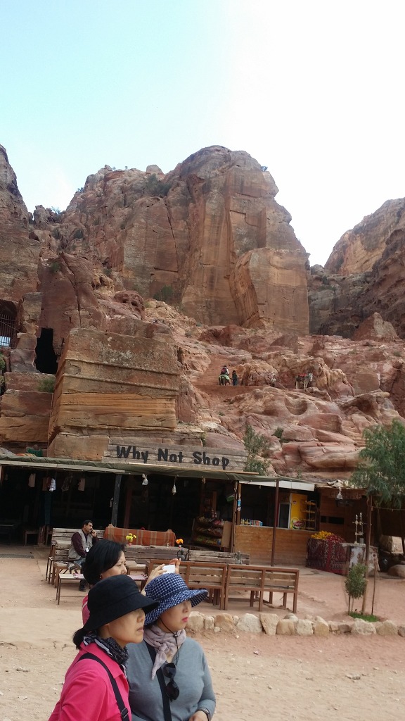 기념품점도 있고, 낙타도 있습니다. 메르스에 놀란 가슴, 감히 접근조차 못했습니다. 외국인들은 더러 돈을 내고 타기도 했습니다. 저 분들은 이곳에 살던 베두인들인데, 요르단에서 그들이 원할 경우 관광산업에 종사할 수 있도록 배려한다고 합니다. 그럼에도 "나는 양과 염소와 더불어 천막생활이 좋아!" 하는 이들이 훨씬 많다고요! 헐~~