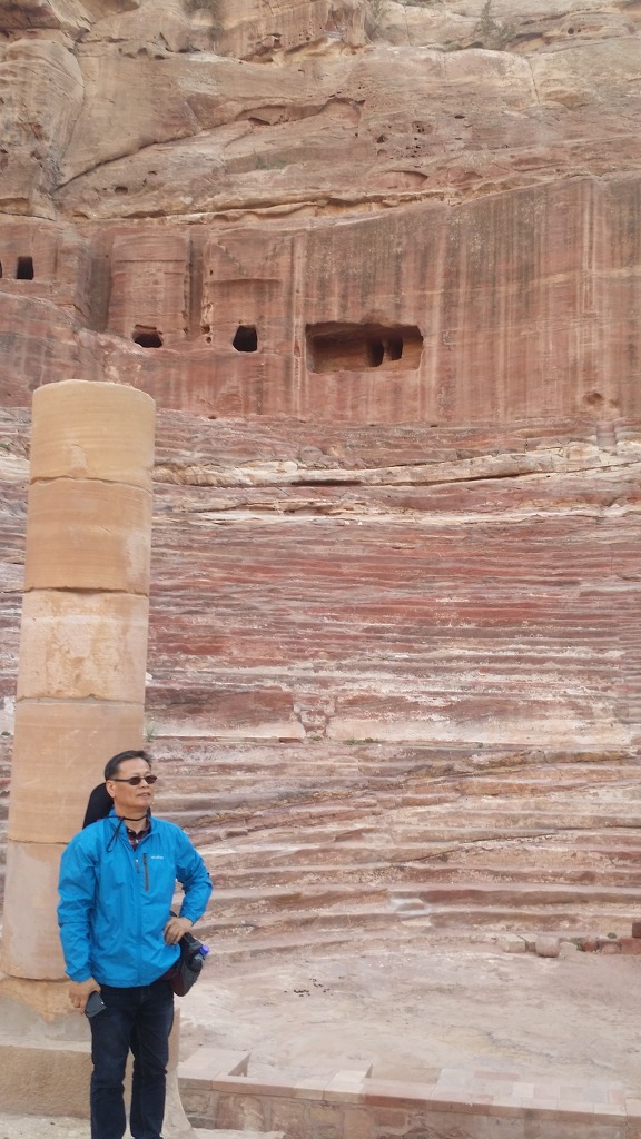 네가독수리처럼 높이 오르며 별 사이에 깃들일지라도 내가 거기에서 너를 끌어내리리라 여호와의 말씀이니라 (옵1:3~4) 저 앞에 원형극장이 보입니다. 그러나 시간이 촉박합니다. 가이드 선교사님은 페트라 정문에서 만날 시간을 정해 주십니다. 동행하신 목사님 한 분과 "우리 저 원형극장에 뛰어서 갔다 옵시다" 성지 순례 도중 숱한 원형극장을 만났습니다. 그러나 페트라 원형극장은 돌산을 깎아내어 만들었습니다. 여타의 다른 원형극장은 돌을 쌓아올려서 만들었습니다. 그러나 이곳은 돌산을 깎았기 때문에 저 모든 것이 한 개의 돌 덩어리입니다. 물론 앞에 쌓은 조형물도 있지만요. 이곳에 3천명이 앉을 수 있다고 합니다. 얼른 사진을 찍고 되돌아갑니다. 가면서 알 카즈네 인증샷입니다. 보아주셔서 감사합니다. 은혜가 되었으면 좋겠습니다. 자료가 보강되면 또 수정하고 정리하겠습니다. 샬롬샬롬~~~ 페트라 안녕~~ |