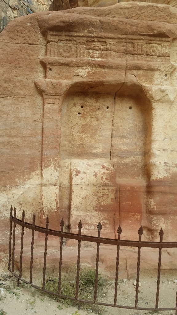에서는 하나님을 외면했지만 그의 후손들 에돔족속은 신을 섬기지 않을 수 없었던지 저렇게 암벽을 깎아내고 신전을 팠습니다. 역사가들은 이들이 섬겼던 신이 '두사랴'인데, 이 신은 그리스 신화에 나오는 디오니소스 신입니다. 바카스 신이지요! 어차피 신과 무관할 수 없다면 창조주이신 하나님 신앙으로 갔어야지 엉뚱한 음료의 신을 섬기다가 하나님의 호된 꾸지람을 듣습니다. 뭔가를 설치하기 위해 암벽을 파낸 곳을 '벽감'이라고 합니다.