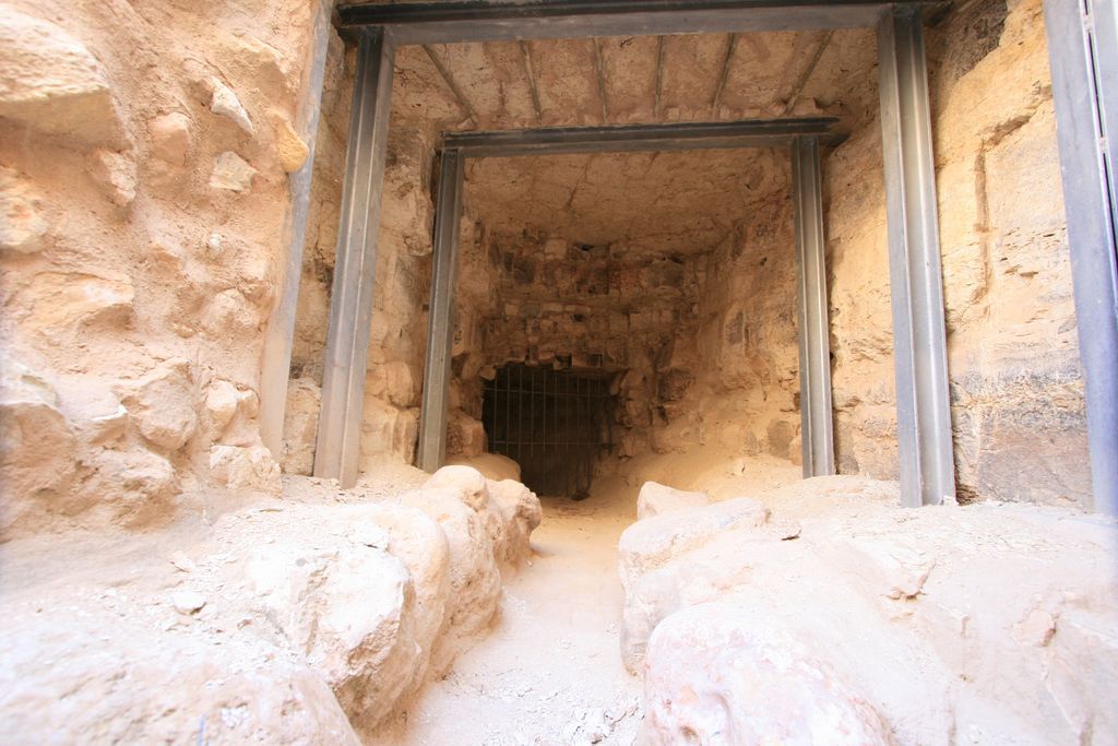 명색이 지성소인데 웬 돌 비석이 있습니다. 이스라엘 사람들이 가나안 족들과 혼합하여 요상한 신을 만들었습니다. 저 돌판을 '하나님의 발'을 상징한다며 예배했다고 합니다. 잘못된 것은 훼파되어야지요! 아마도 히스기야 왕이 종교 개혁을 하고 우상을 허물어 뜨릴 때 이 성소도 무너뜨려졌을 거랍니다.