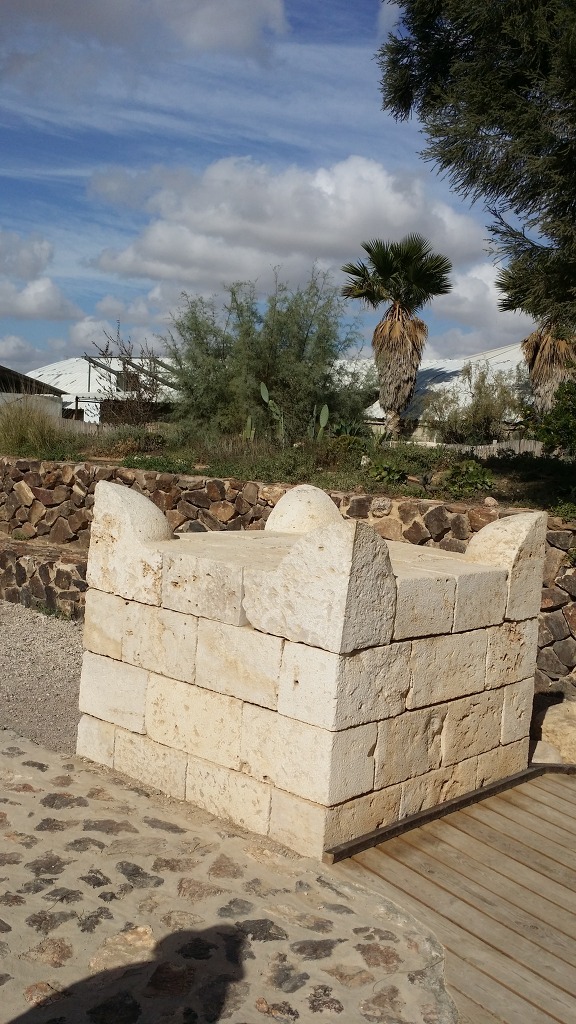 가로 세로 높이 모두 1.6미터 규격으로 만들어진 이것은 발굴된 것의 모조품입니다. 진품은 박물관에 있답니다. 뒤에 보이는 큰 나무는 에셀나무, 브엘세바와 에셀나무는 뗄래야 뗄 수 없는 관계지요!