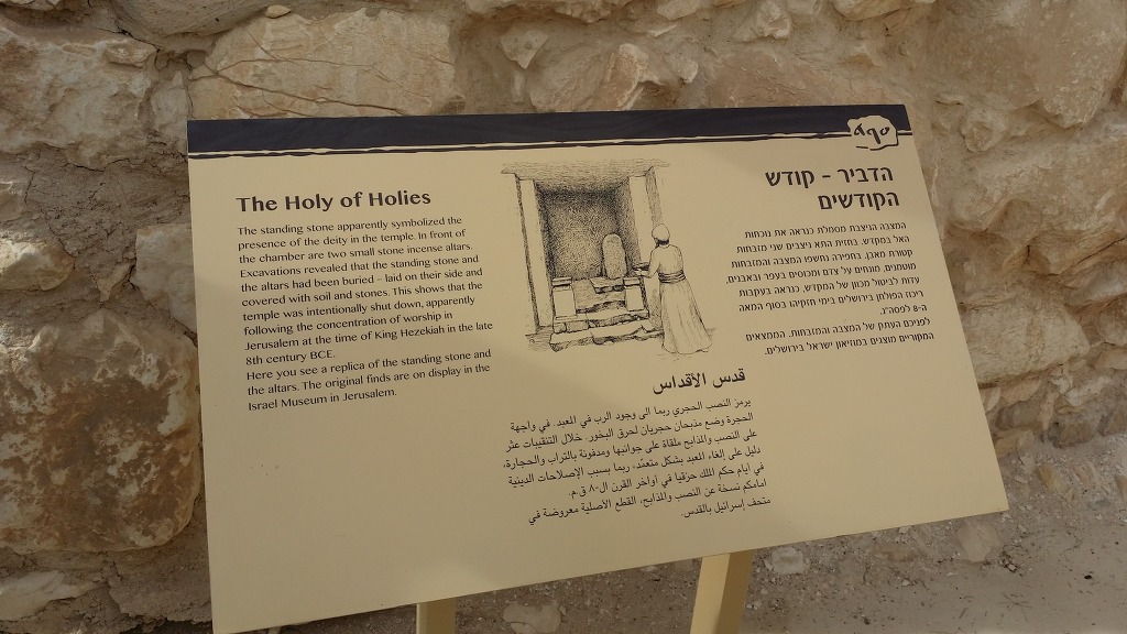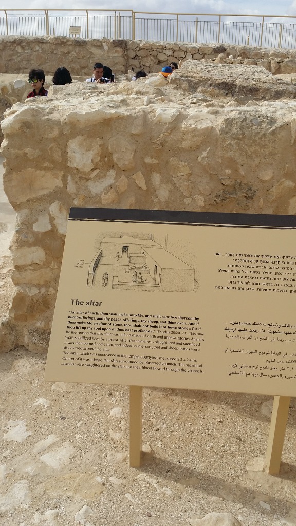 제단임을 알리는 표지판입니다. 이 유적을 발굴할 때 히브리어 성경 구절이 새겨진 토기 조각 100여개가 발견되었다고 합니다.