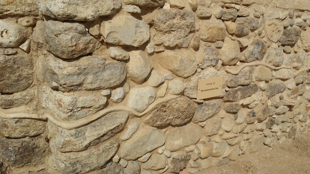 가까이 다다가서 한 컷! 여기까지는 원형이고 이 위로는 복원했다는 표시입니다. 이 유적의 발굴작업은 1969년부터 1976년까지 텔아비브 대학 주관으로 이루어졌다고 합니다. 이곳에는 주후 3세기 로마시대까지는 사람이 살았지만 그 이후로 폐허가 되었다고 합니다.