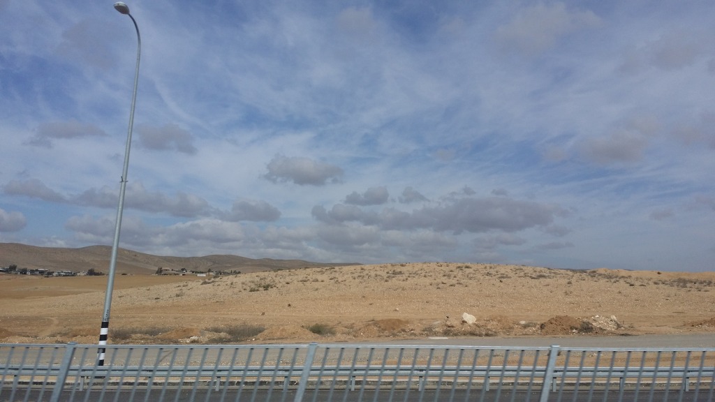 쉐펠라를 돌아보고 남방(네게브)지역으로 향하는 버스 안에서 찍은 사진입니다. 지금부터 가려는 브엘세바와 아라드는 이스라엘의 남쪽지역에 있습니다. 우리 말로 '남방' 혹은 현지어로 '네겝, 네게브'라고 불리는 지역입니다.