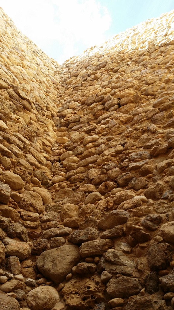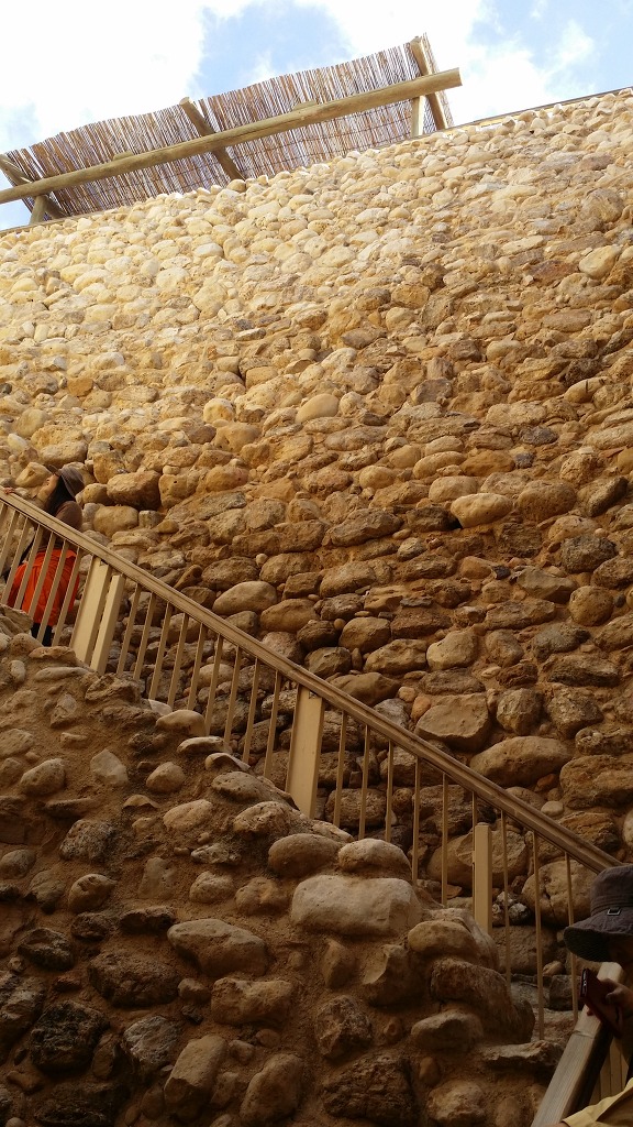오른쪽 성채 벽에 보시면 아랫부분에 뱀처럼 구불구불 표시가 있는데, 표시까지가 발굴된 유적이고 그 위로는 주변에서 발굴한 돌로 원형을 일부 복원했다는 뜻입니다.