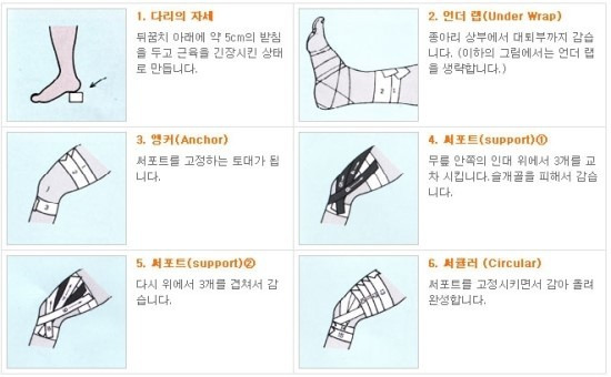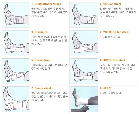 이 때의 테이핑은 족 관절의 움직임을 가능한한 자유롭게 하면서
