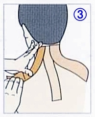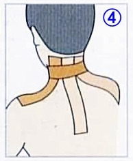 ④ 일자형 테이프(3칸)을 그림과 동일하게 목부위에 자연스럽게 붙인다.