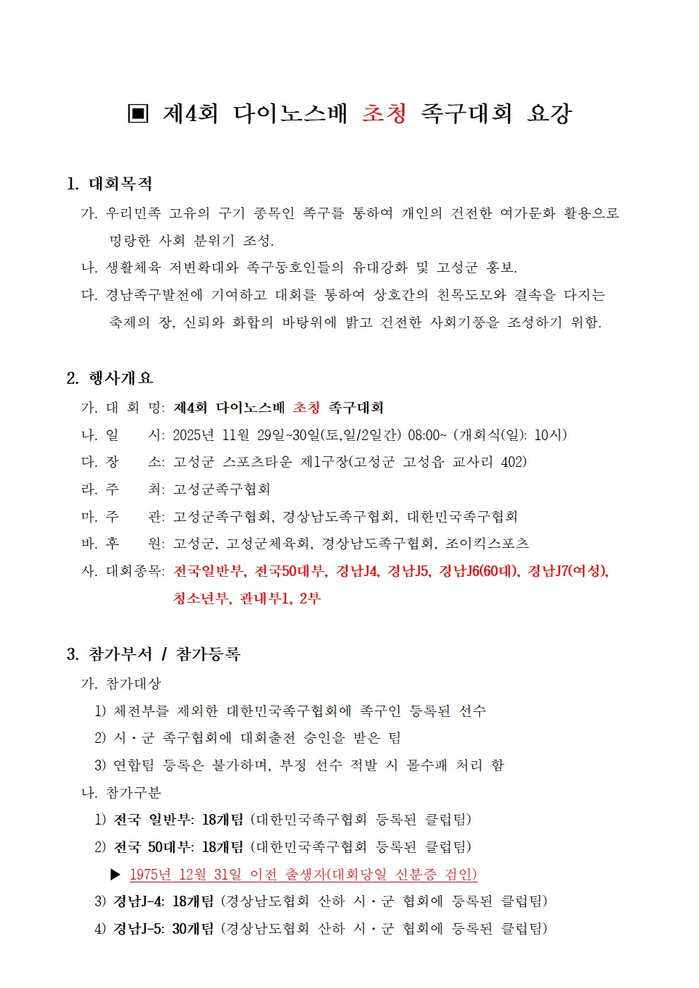제4회 다이노스배 초청 족구대회알림 작성자배효식(경남경기이사)|작성시간25.10.30|조회수50 목록 댓글 0 글자크기 작게가 글자크기 크게가 다음검색 현재 게시글 추가 기능 열기 북마크 공유하기 신고 센터로 신고 댓글 댓글 0 댓글쓰기 답글쓰기 댓글 리스트