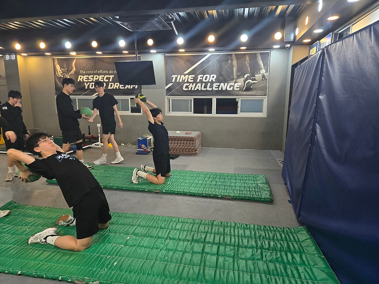 자세 수정과 공을 힘있게 던지는 연습중!!