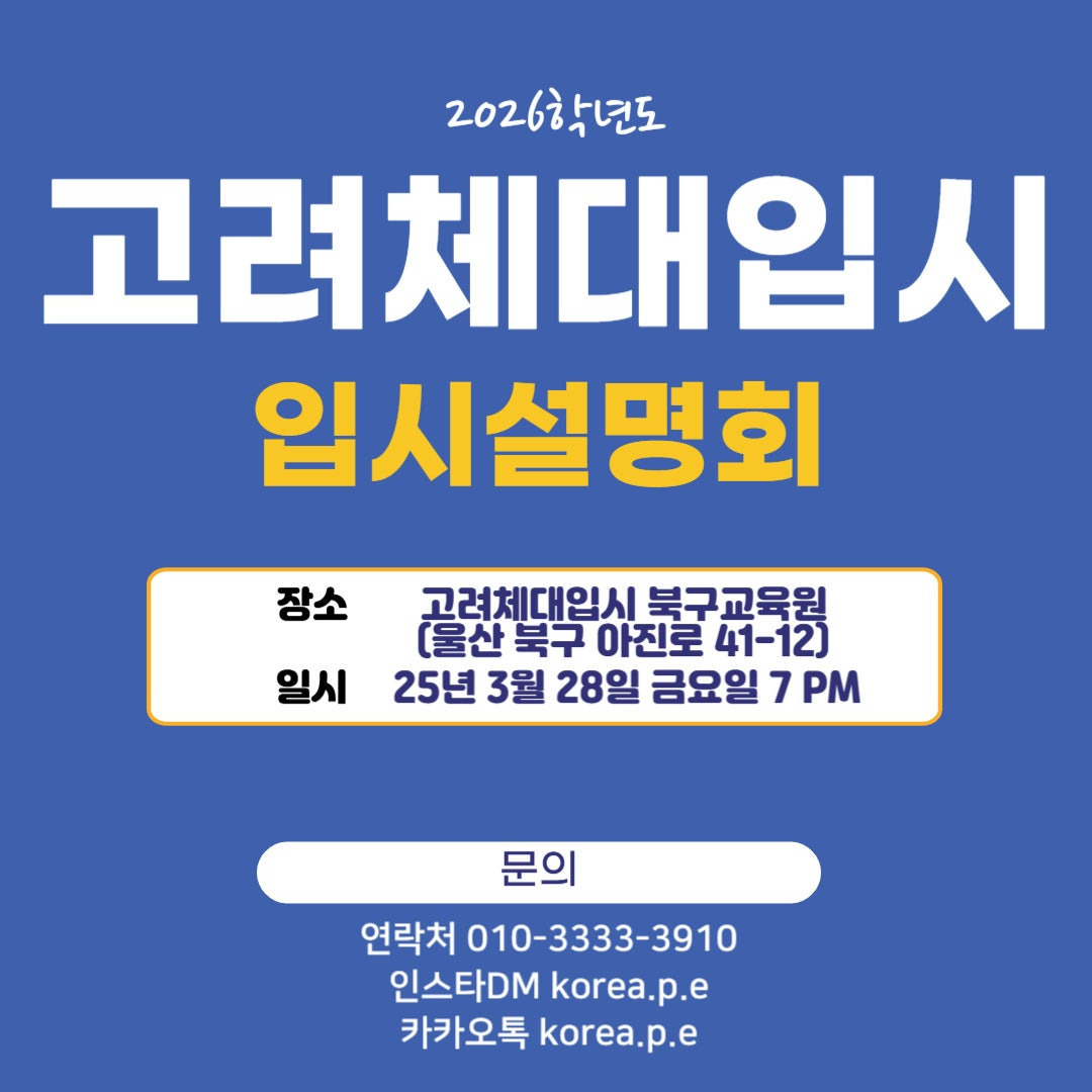 체육대학에 관심있는 울산지역의 모든 학생들을 초대합니다!!!