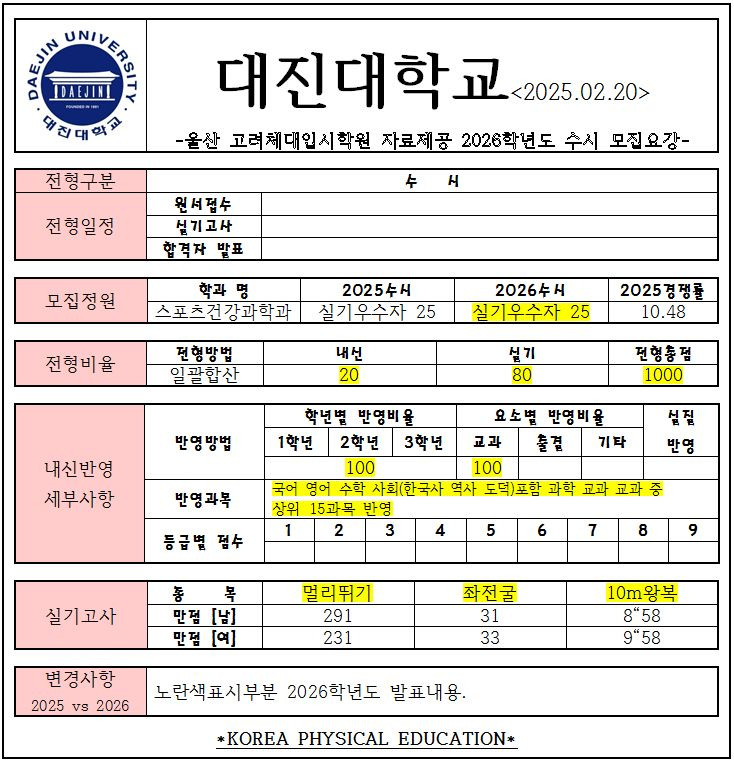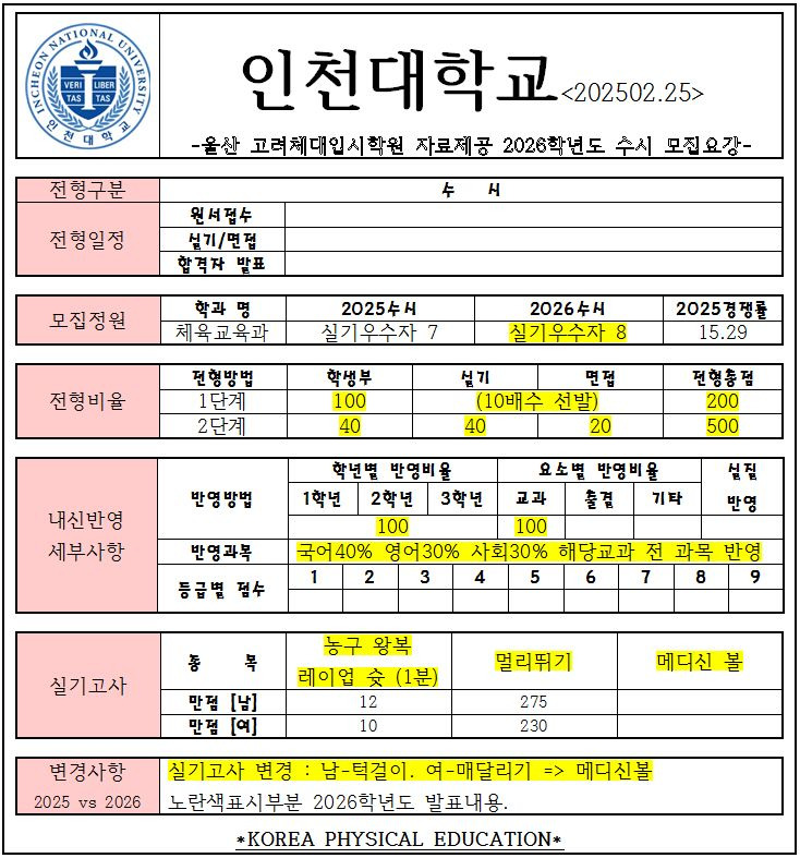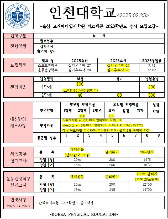 2026학년도 수시 [경기.인천] 전형계획 작성자카페지기|작성시간25.02.27|조회수5 목록 댓글 0 글자크기 작게가 글자크기 크게가 다음검색 현재 게시글 추가 기능 열기 북마크 공유하기 신고 센터로 신고 댓글 댓글 0 댓글쓰기 답글쓰기 댓글 리스트