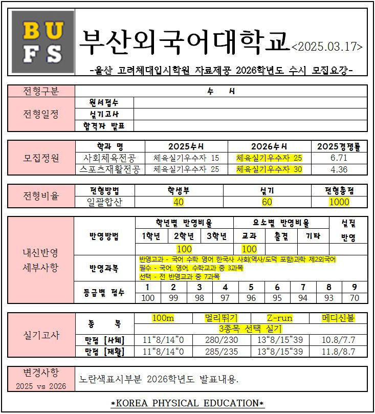 2026학년도 [부산.울산.경남] 전형계획 작성자카페지기|작성시간25.03.21|조회수24 목록 댓글 0 글자크기 작게가 글자크기 크게가 다음검색 현재 게시글 추가 기능 열기 북마크 공유하기 신고 센터로 신고 댓글 댓글 0 댓글쓰기 답글쓰기 댓글 리스트