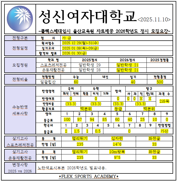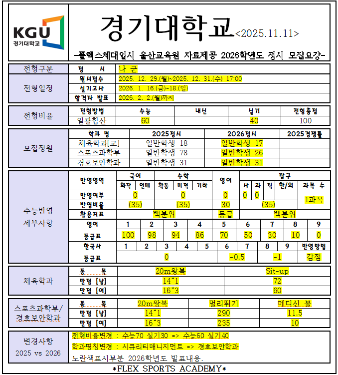 2026학년도 정시 [가군] 수도권 모집요강 작성자카페지기|작성시간25.11.12|조회수19 목록 댓글 0 글자크기 작게가 글자크기 크게가 다음검색 현재 게시글 추가 기능 열기 북마크 공유하기 신고 센터로 신고 댓글 댓글 0 댓글쓰기 답글쓰기 댓글 리스트
