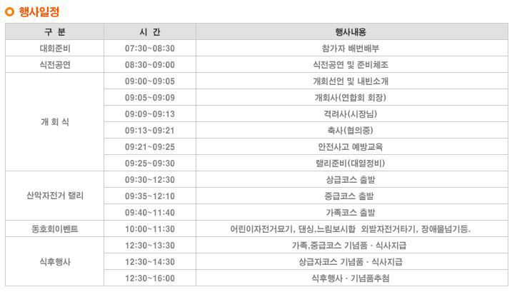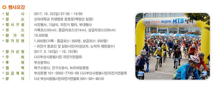 " 제9회 Dynamic Busan 산악자전거 랠리 " 상세내용 안내 작성자부자연 홍보이사|작성시간17.09.17|조회수54 목록 댓글 0 글자크기 작게가 글자크기 크게가 참가신청 ☞ www.busanlovebike.co.kr 다음검색 현재 게시글 추가 기능 열기 북마크 공유하기 신고 센터로 신고 댓글 댓글 0 댓글쓰기 답글쓰기 댓글 리스트
