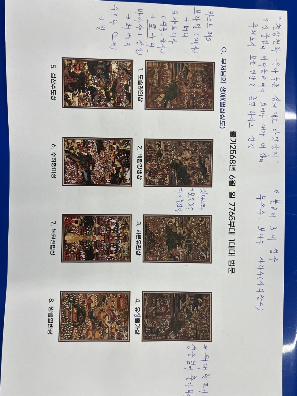 언제가 될지 모르겠지만 통도사나 석남사 사찰순례를 계획하고 있기때문에 오늘은 팔상성도에 대해서 설명해주었습니다.또 팔상성도와 관련있는 부처님 8대성지도 소개해 주었습니다.