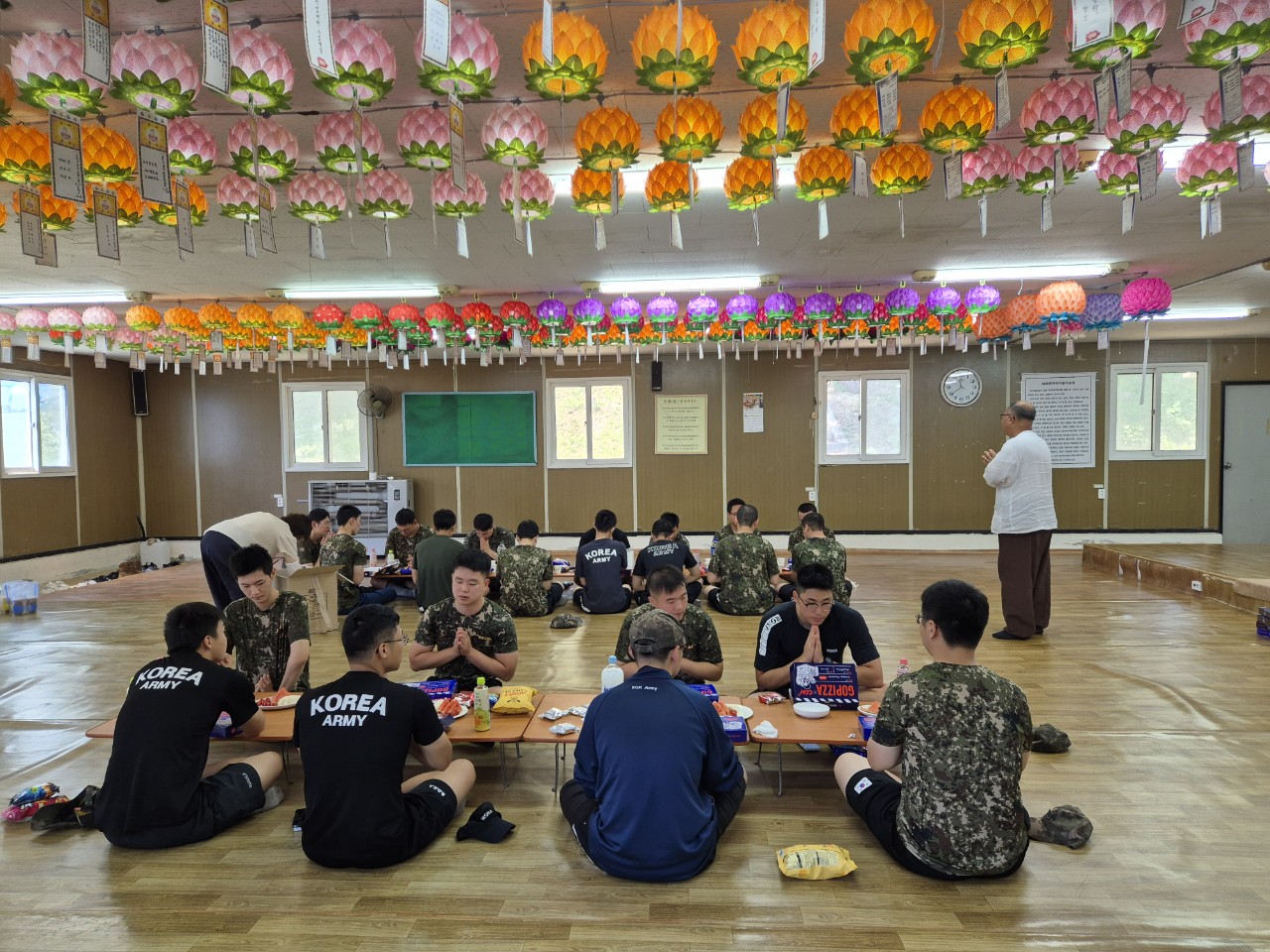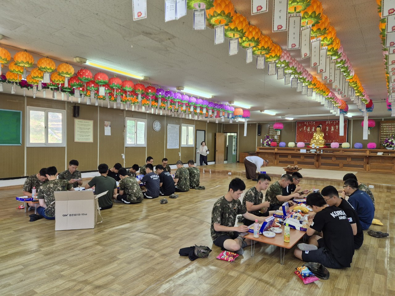 오관게송으로 시작한 공양 시간은 잘 먹는 장병들의 모습을 보는 것만으로도 미소가 절로 지어졌으며, 또 푸짐하게 공양을 마련해 주신 옥보살님께 감사하고 또 감사한 마음을 들게 하였습니다.