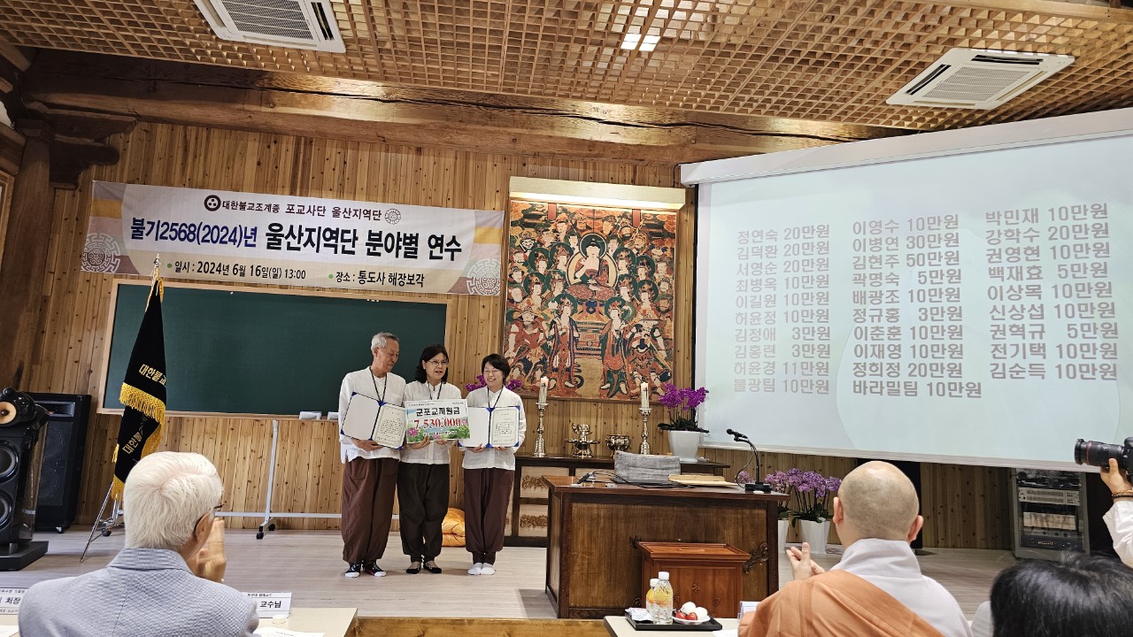 #군포교 문수, 보현팀의 포교활동에 열악한 상황에 조금이라도 보탬을 드리고져 지역단 포교사들과 관심있는 불자님들이 마음을 모아 지원금을 전달하였습니다.