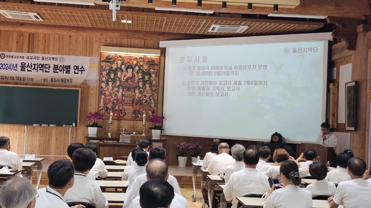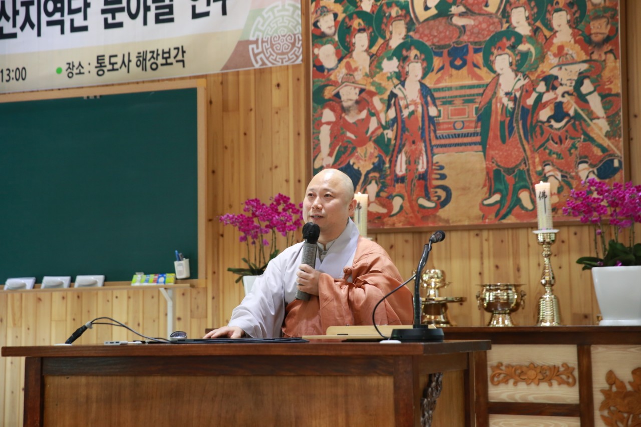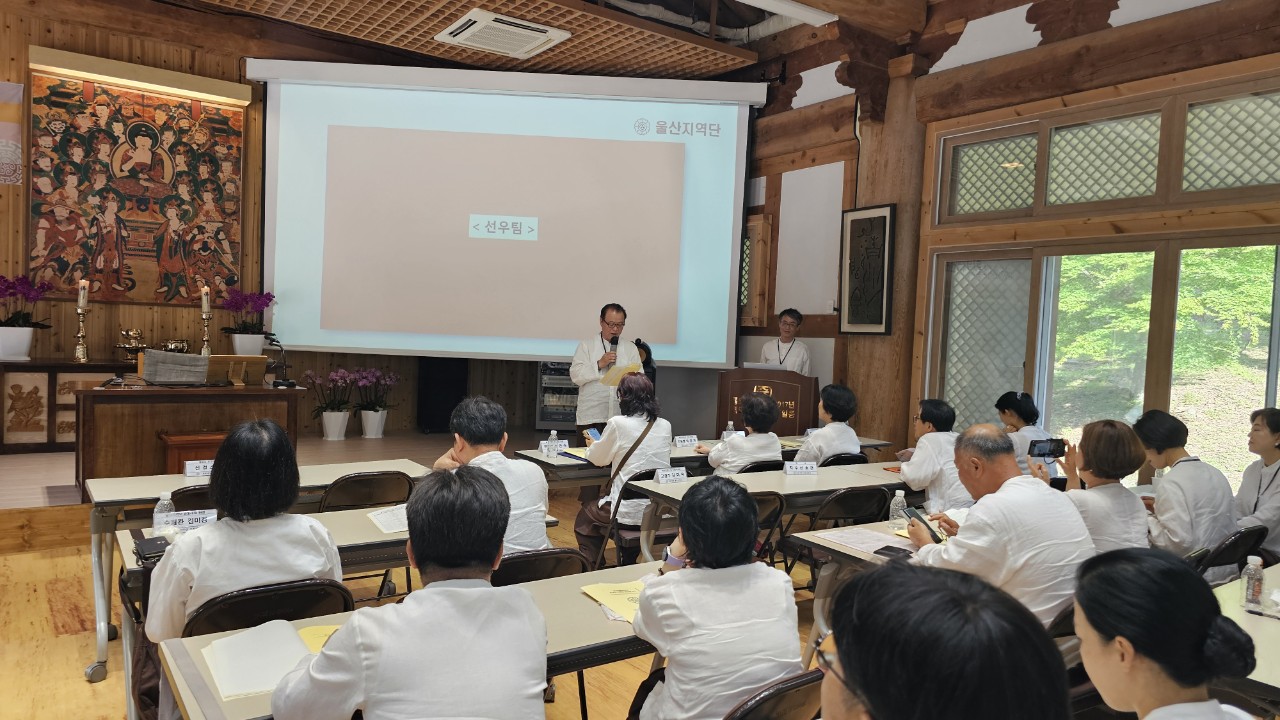 통도사 해장보각에서 울산지역단 분야별연수가 진행되었습니다.