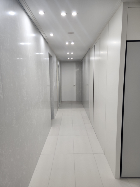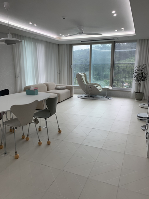 저희집은 하늘채 30평 아일랜드 철거 하여 거실전체와 복도 시공 하였습니다.