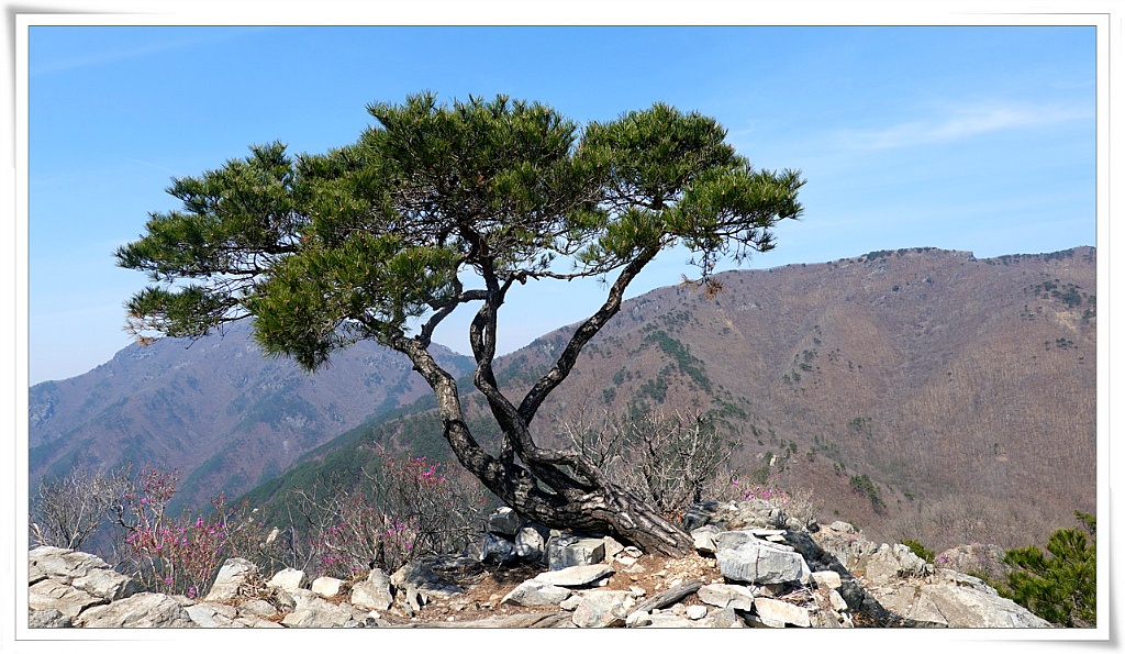 능선에 진달래가 한창이다.