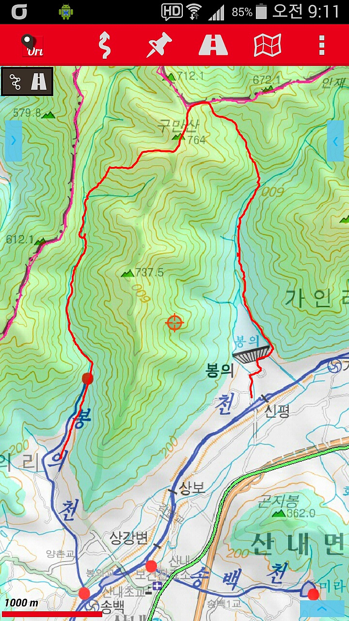 1.산행구간 : 구만산장-구만암-구만폭포-구만산-가인계곡-봉의 저수지-인골산장