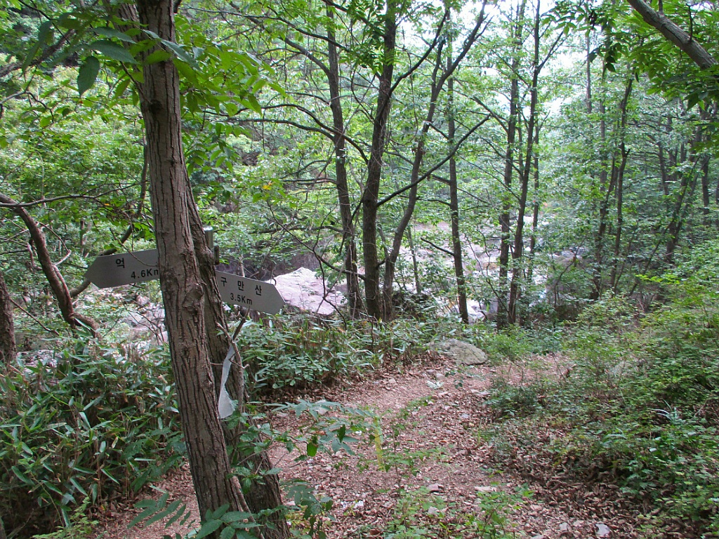 구만산3.5km/억산4.6km의 이정표가 있는 가인계곡입니다.
