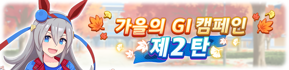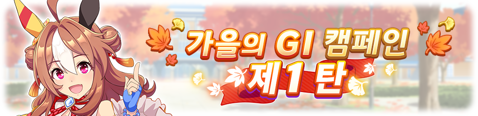 지난 가을의 GI 캠페인에서 대상 경기장 혹은 육성 우마무스메가 업데이트되지 않아 개최되지 않은 기념 미션과 피스 추가 캠페인이 이번 가을의 GI 캠페인에서 대상 레이스와 동기간에 개최되어 안내드립니다.