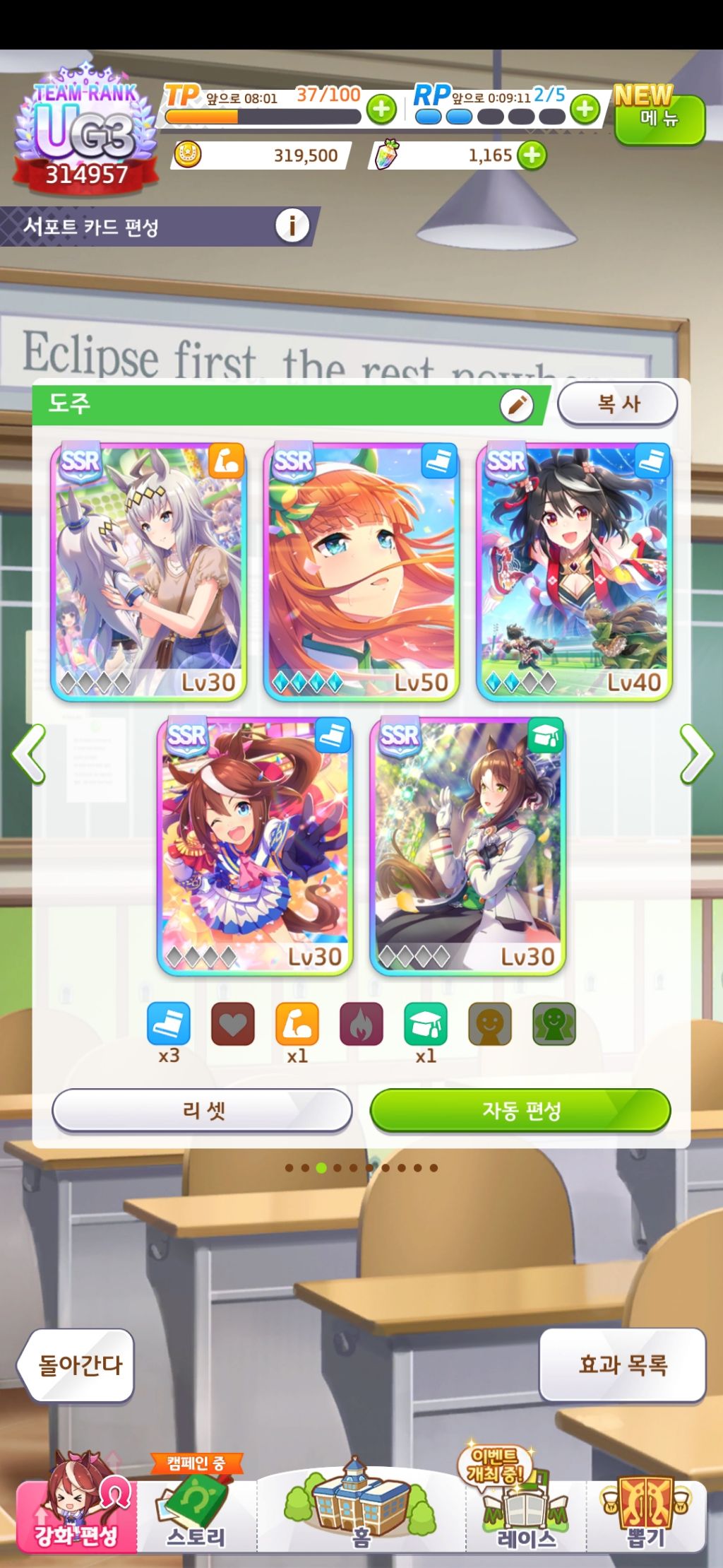 1. 스피드 카드 3개중에 키타산, 스즈카를 고정으로 하고 나머지 하나를 비코랑 테이오 중에 뭐를 할지