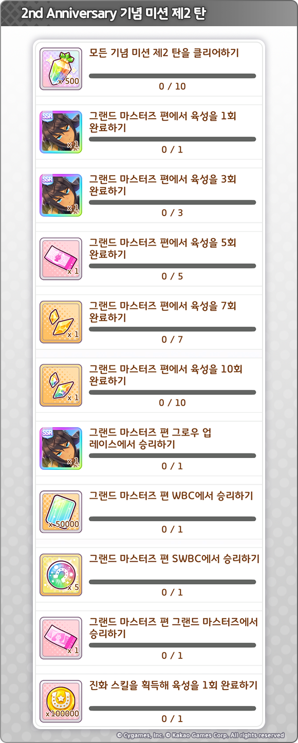 - 2nd Anniversary 기념 미션 제2 탄: 최대 3장 획득 가능