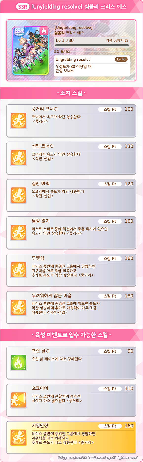 - 6월 14일(금) 점검 완료 후 / SSR [Unyielding resolve] 심볼리 크리스 에스 서포트 카드의 상세 정보 추가