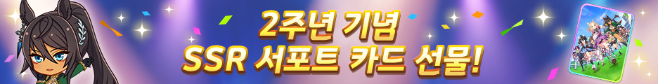 - [2nd Anniversary SSR 교환권]으로 2024년 4월 30일(화) 11:59까지 서포트 카드 뽑기에 등장한 SSR 서포트 카드를 교환할 수 있습니다.