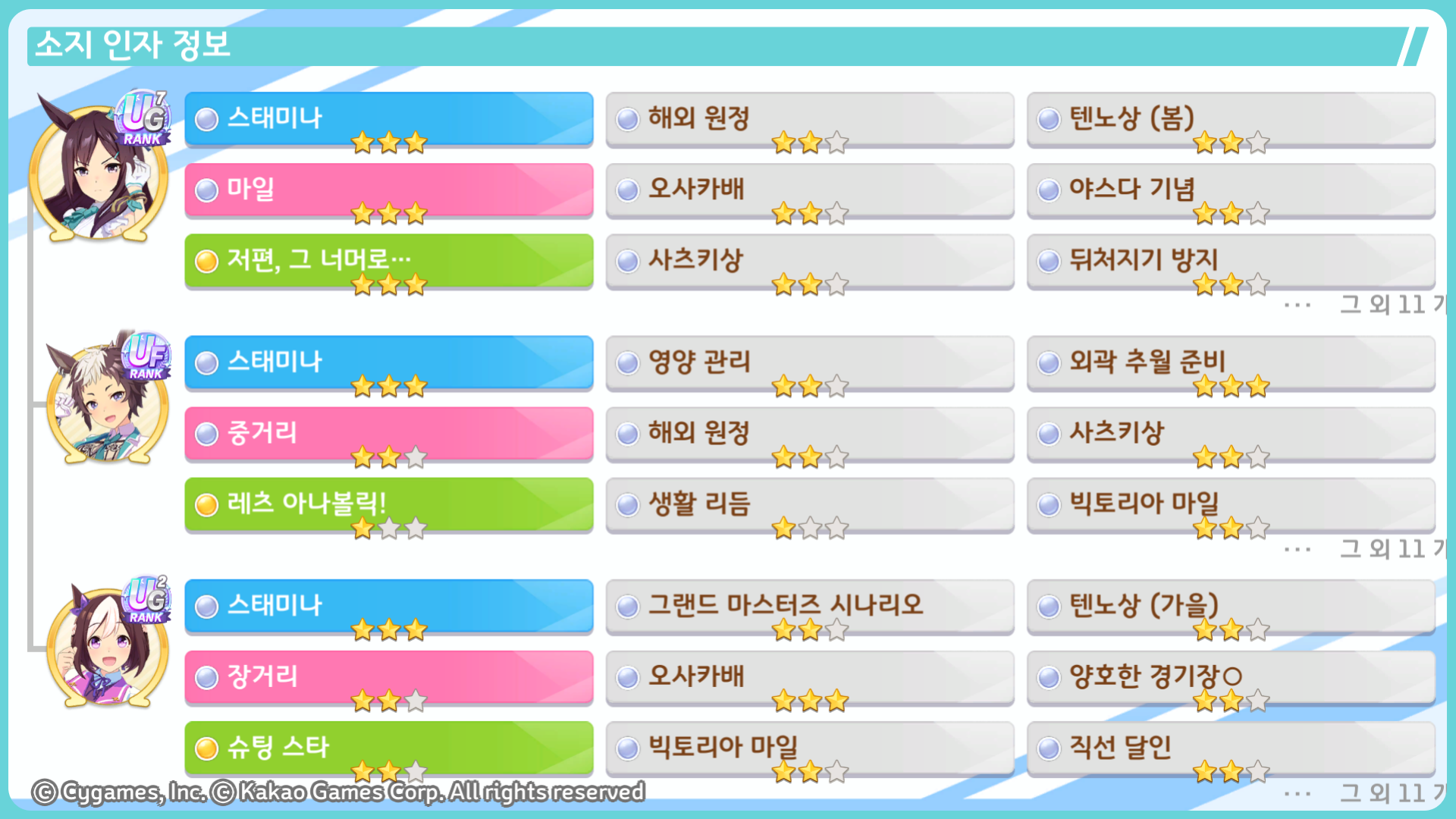 3. 대표 우마무스메 소개(인자 소개 필수): 그렇게 특출나진 않지만 청적녹3성이라 어쩌다 보면 기분이 좋습니다