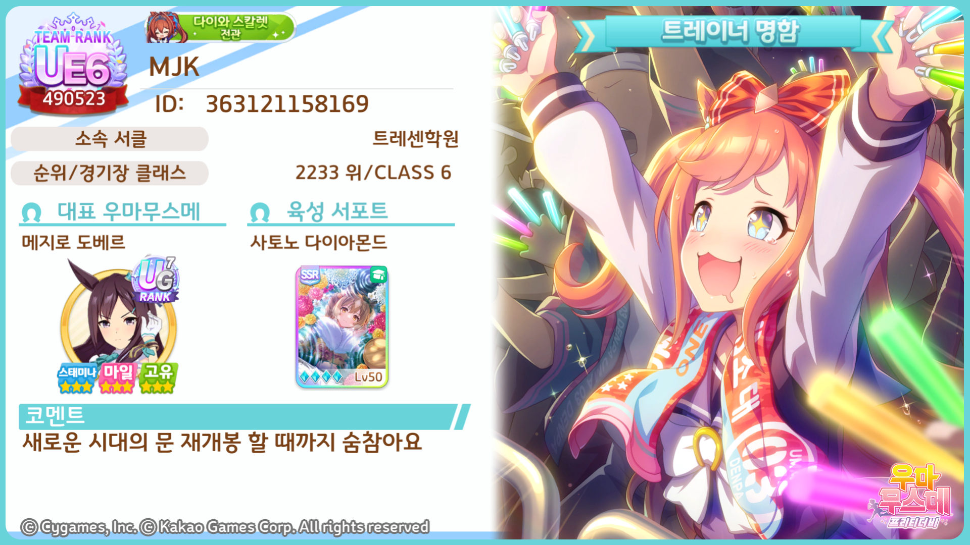 * 대표 우마무스메와 서포트 카드가 변경될 경우 이벤트 참여 글에도 함께 변경해 주셔야 참여로 인정됩니다.