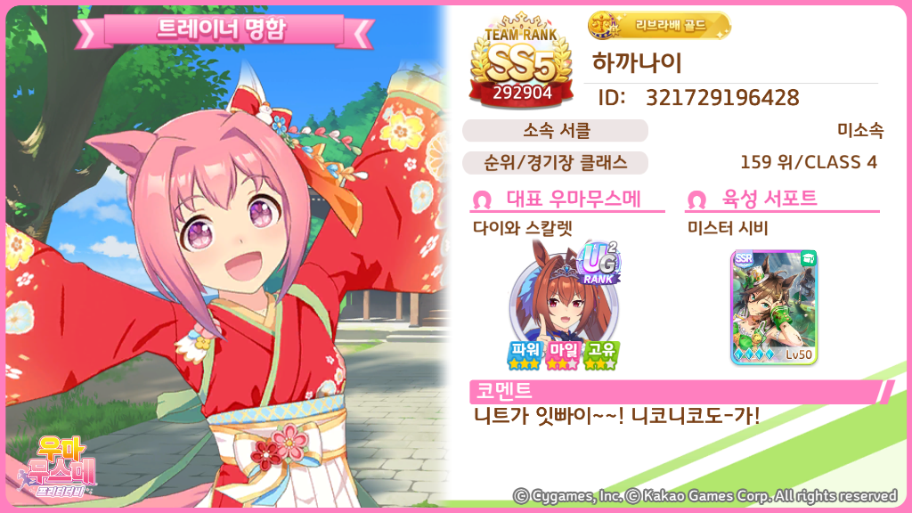 * 대표 우마무스메와 서포트 카드가 변경될 경우 이벤트 참여 글에도 함께 변경해 주셔야 참여로 인정됩니다.