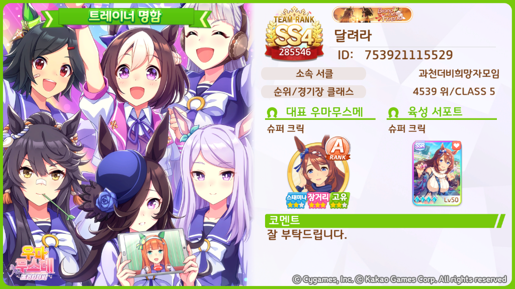 스태 8 장거리 9 슈퍼 크릭 작성자전속전력달려라|작성시간24.03.07|조회수217 목록 댓글 0 글자크기 작게가 글자크기 크게가 1. 이벤트 참여 여부 : O2. Player ID : 7539211155293. 인자 및 서포트 카드 소개(필수): 장거리 육성용 크릭입니다. 서포트 카드는 SSR 스태미나 슈퍼 크릭입니다. 다음검색 현재 게시글 추가 기능 열기 북마크 공유하기 신고 센터로 신고 댓글 댓글 0 댓글쓰기 답글쓰기 댓글 리스트
